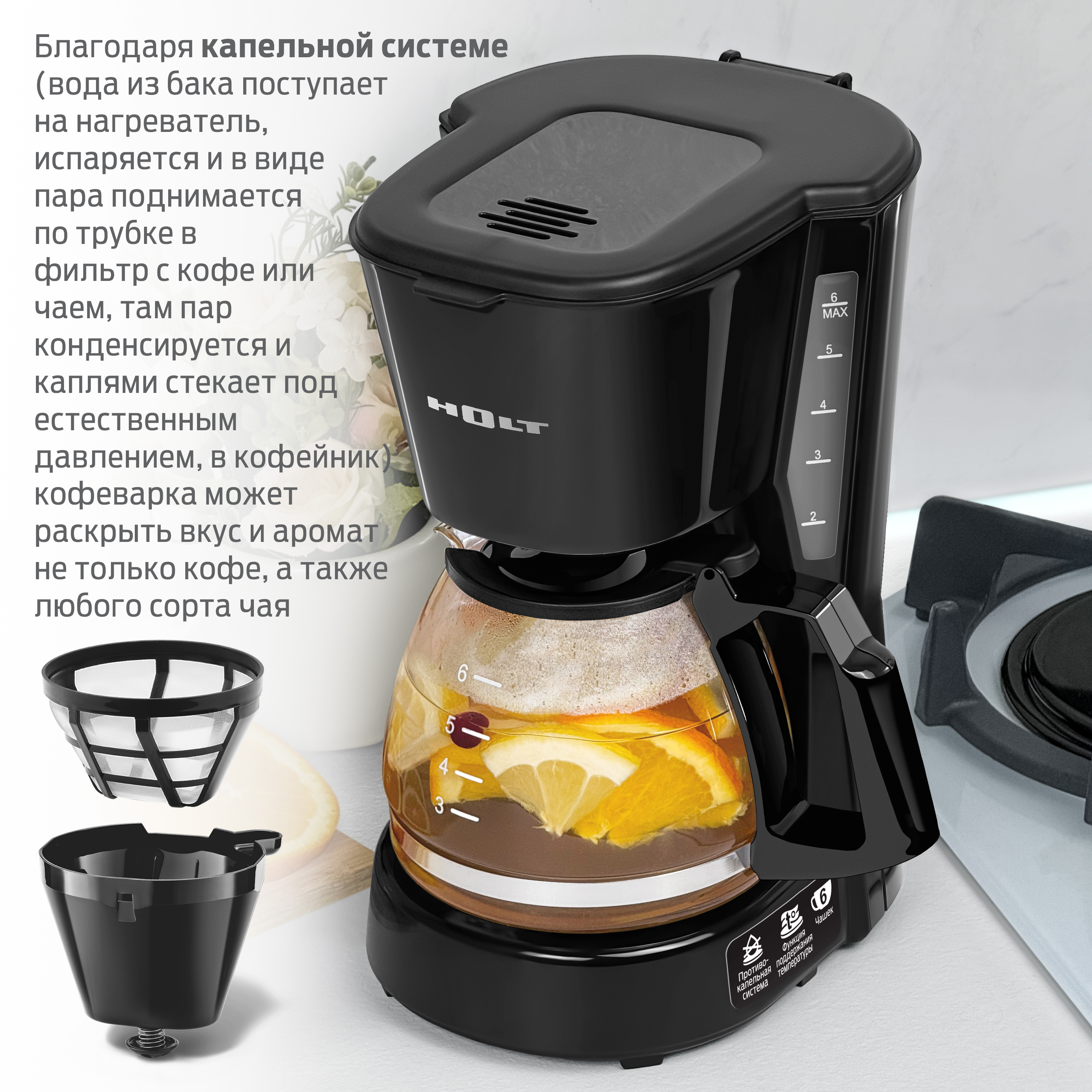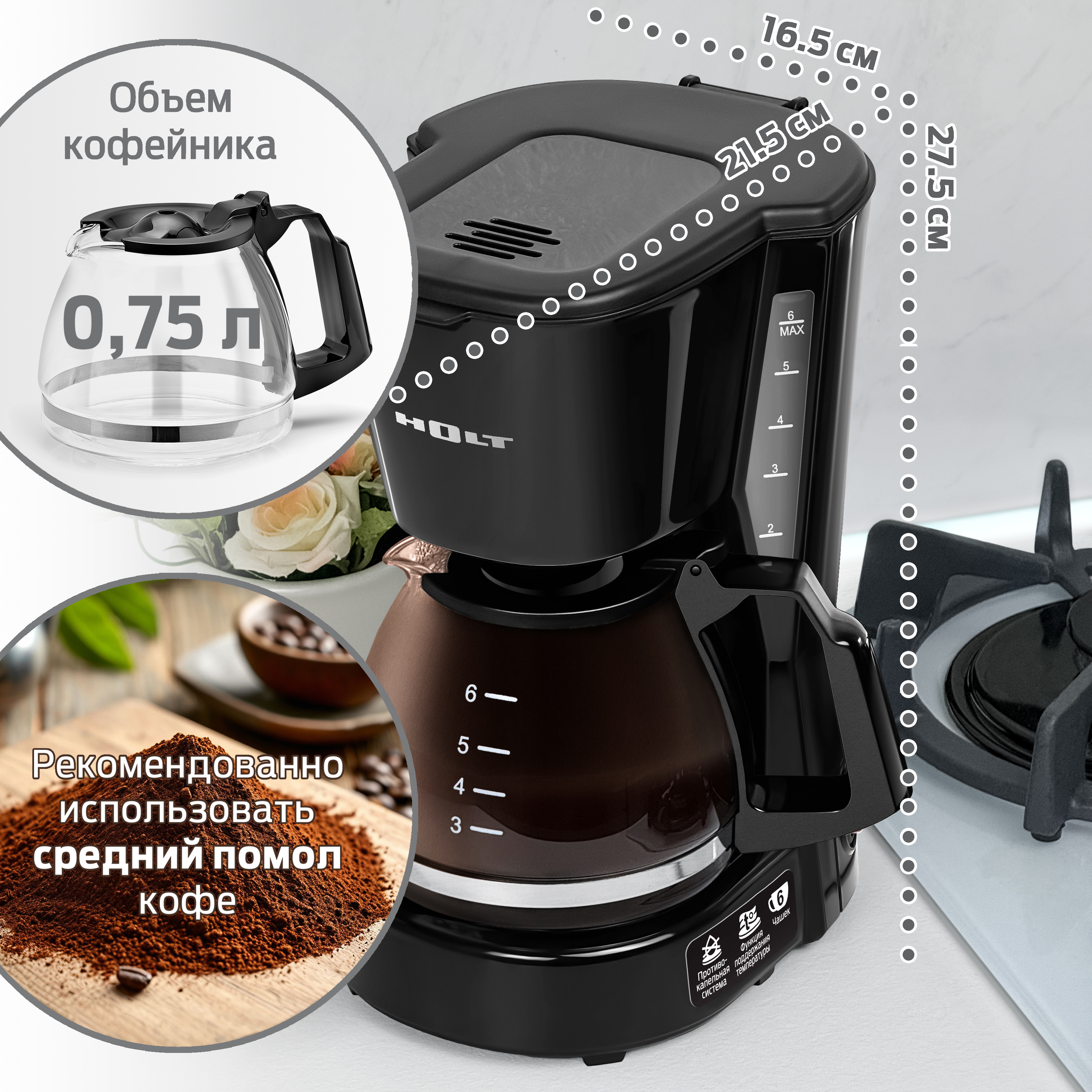 Объем кофейника 0,75 л